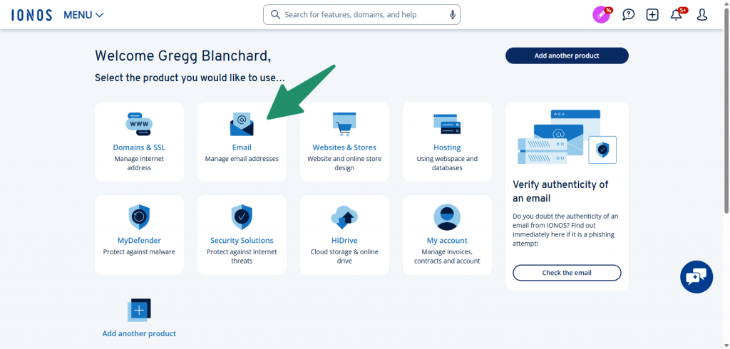 Log in to your IONOS dashboard and head to the Email section of your admin area.